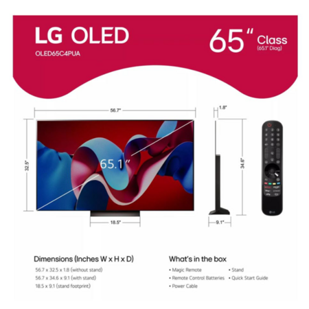Select Micro Center Stores have Refurbished: 65" LG OLED65C4AUA C4 4K OLED evo Smart TV (2024) for $849.99. Select free store pickup where available.