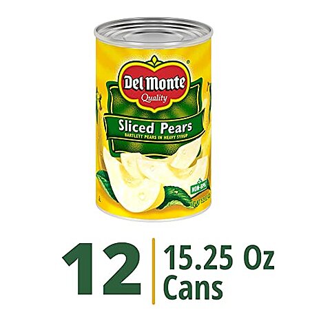 Model: DEL MONTE Sliced Bartlett Pears in Heavy Syrup, Canned Fruit, 15.25 Ounce (Pack of 12)