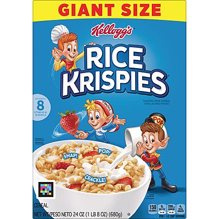 Model: Kellogg's Rice Krispies Cold Breakfast Cereal, 8 Vitamins and Minerals, Rice Krispies Treats, Giant Size, Original, 24oz Box (1 Box)