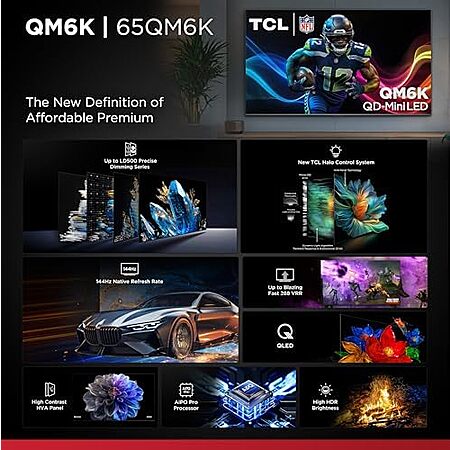 $549.99*: 65" TCL QM6K QD-Mini LED 4K Smart Dolby Vision IQ 144Hz TV w/ Google TV (2025) at Amazon