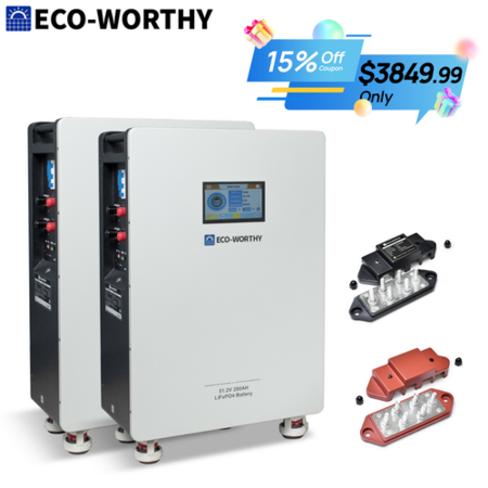 2-Pack ECO-WORTHY 14kWh 51.2V 280AH LiFePO4 Solar Battery Backup w/ 200A BMS + Busbar (Version2) on sale for $4349.99 - $500 with coupon code