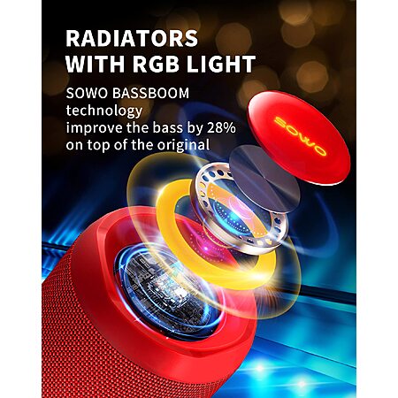 25W SOWO Portable Bluetooth Speaker Waterproof IPX7 (Red) $18.48 + Free Shipping w/ Prime or on $35+