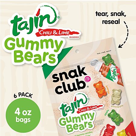 6-Pack 4-Oz Snak Club Tajin Gummy Bears Candy (Chili & Lime) $7.48 + Free Shipping w/ Prime or on $35+