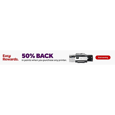 Disclaimer: Valid on purchases of printers made online at Staples.com only. Not valid on Instacart, DoorDash or Uber Eats orders. Limit of $700 spend on printers. While supplies last. Offer available to Staples Easy Rewardsâ„¢ member only. To be eligible for the offer, member must activate offer in their Easy Rewards dashboard on staples.com or Staples app and provide membership number at checkout. Points will be earned on the purchase amount paid at checkout after application of all promotions, coupons, instant savings and point redemptions. Taxes and shipping are not included in calculating the total purchase amount. May be used up to one time per Staples Easy Rewards member within the promotional period, nontransferable. Offer may not be combined with any other Staples Easy Rewards promotion in a single transaction. Not valid on prior purchases or purchases made with Staples Advantage In-Store Purchase Program. Offer is subject to change or cancellation at any time. Staples Easy Rewards program terms and conditions apply. For full program details visit staples.com/easy. Expires 10/11/25. 346044.