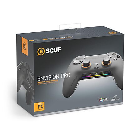 Model: SCUF ENVISION PRO Wireless PC Only Gaming Controller - Five Remappable G-Keys - Remappable Back Paddles - Instant Triggers - ICUE Compatible - Steel Gray