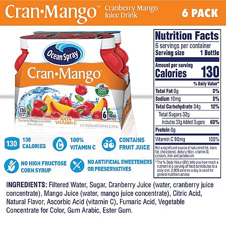 6-Count 10-Oz Ocean Spray Cran-Mango Cranberry Mango Juice Drinks $4.02 w/S&S + Free Shipping w/ Prime or on $35+