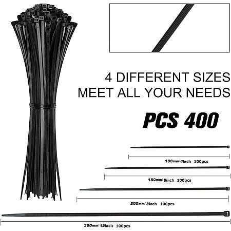 Cable Zip Ties,400 Pack Black Assorted Sizes 12+8+6+4 Inch,Multi-Purpose Self-Locking Nylon Cable Cord Management ,Plastic Wire Ties for Home,Office,Garden,Workshop. $3.99