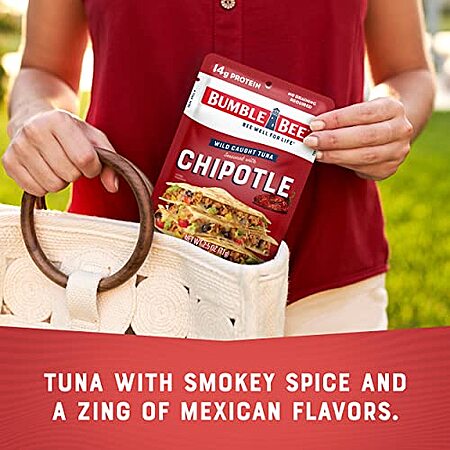 Amazon [amazon.com] has 12-Pack 2.5-Oz Bumble Bee Wild Caught Tuna Pouch (Chipotle) for $8.88 - 5% when you check out via Subscribe & Save = $8.44.