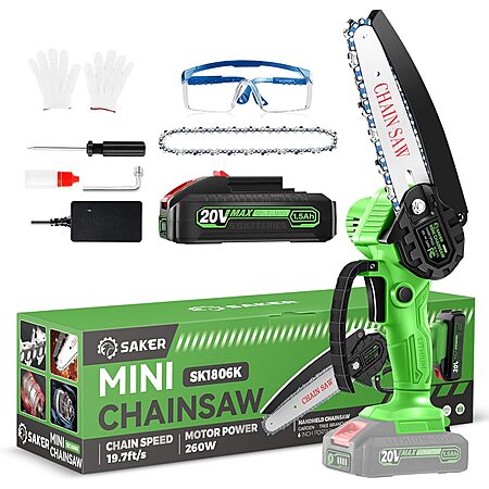 Prime Members: 6" Saker Mini Chainsaw w/ 1.5ah Battery (Green)