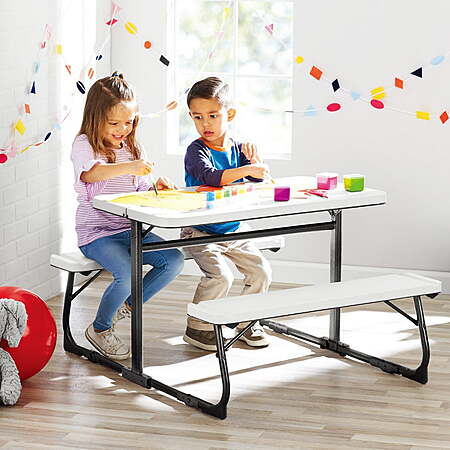 Product Description: | The perfect place for play, homework, arts and crafts, games, and more. The Your Zone Folding Kid's Activity Table with Two Benches is durably constructed to hold up for a long life of use. Your kids will love having their very own activity table sized just for them. The table seats up to four children on two sturdy attached benches. Best of all, this activity table features an innovative design that allows it to be folded up completely for easy storage and transport or folded in half for placement against walls and in smaller spaces or to use as a desk. The Your Zone Folding Kid's Activity Table with Two Benches makes a wonderful addition to any kid's bedroom, playroom, activity room, classroom, spare room, basement, and more. Your Zone Folding Kid's Activity Table Product Size: Table: 33.11 in W x 18.98 in D x 21.85 in H; Each Bench: 33.11 in W x 7.17 in D x 12.6 in H; Open Set Size: 33.11 in W x 40.94 in D x 21.85 in H Seats up to four children Includes a table and two attached benches Perfect for play, arts and crafts, games, homework, and more Fold up completely for easy storage Easy-to-clean resin surface Sturdy steel and polypropylene construction for a long life of use Use for children 3-8 years Has an easy carry handle for transport White finish with black support beams Number Of Pieces: 1pcs Model # YZ2436129013001 |