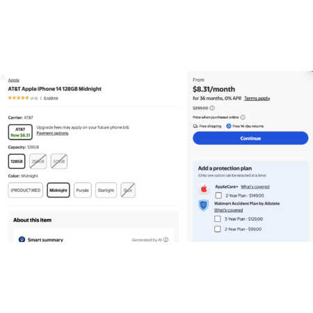 WMT | ATT or Verizon Iphone 14 128GB - $299 (8.31*36 months) | Postpaid accounts only
