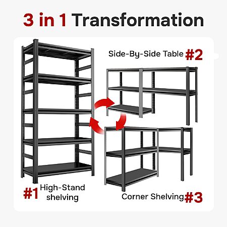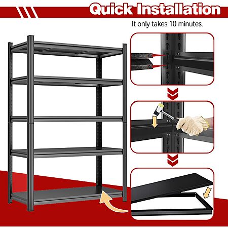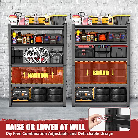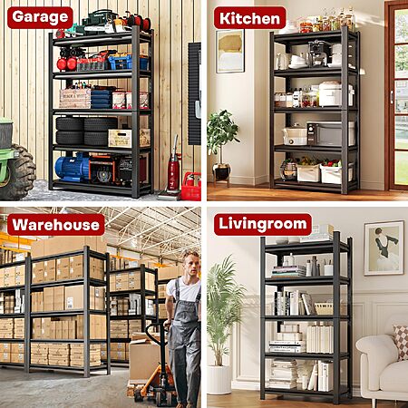 78"H,Heavy Duty 5-Tier Steel Garage Shelving Unit | 3500LB Capacity| Garage & Basement Storage | Industrial-Grade Metal Shelving for Warehouses & Workshops | $63.99