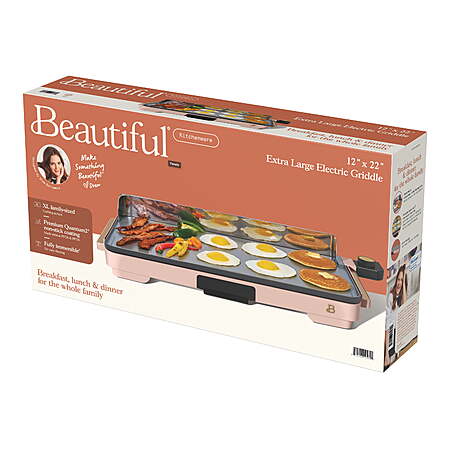 12" x 22" Beautiful Extra Large Electric Non-Stick Griddle (Rose) for
