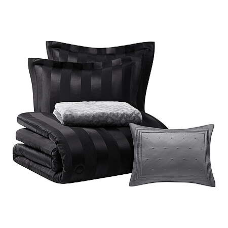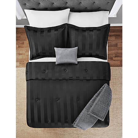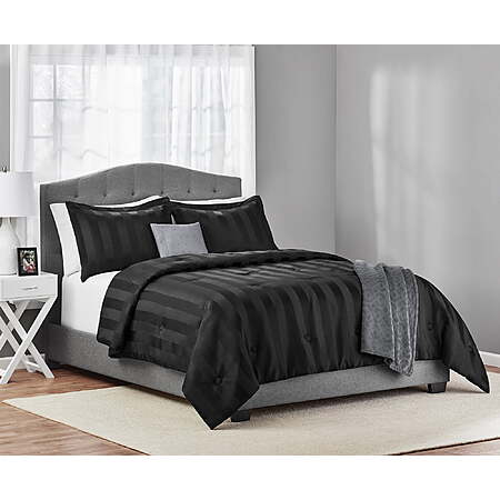 Walmart+ Members: 5-Piece Mainstays Damask Stripe Comforter Set (King, Rich Black)