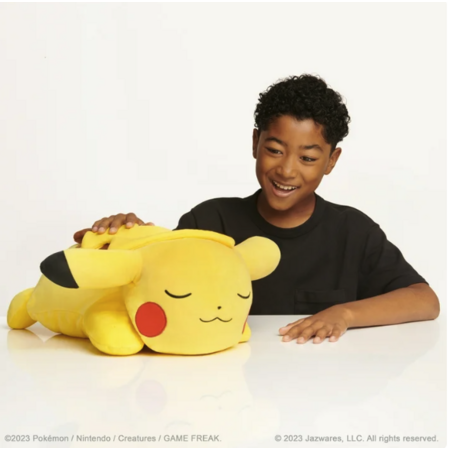 Choose to snooze with Pikachu, the Mouse Pokémon. This supersized plush rounds out at 18-inches and is splayed in a unique sleeping posture. It's also super soft and made with unique material that's perfect for cuddling. After a long day of Pokémon training, Pikachu will be ready to nap. Officially licensed Pokémon product from Jazwares. Ages 2+