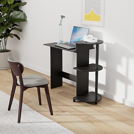 Furinno Compact Computer Desk w/ Shelves (Round Side, Americano/Black) $20.94 + Free Shipping w/ Prime or on $35+