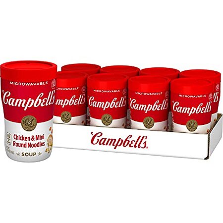 [S&S] $7.37: 8-Pack 10.75-Oz Campbell's Microwavable Sipping Soup (Chicken & Mini Round Noodles) at Amazon (92.1¢ each)