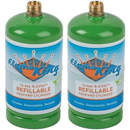 [Prime] $24.64*: 2-Pack 16.4-oz Flame King EZ-Fill DOT Compliant Refillable Propane Cylinder Tank at Amazon