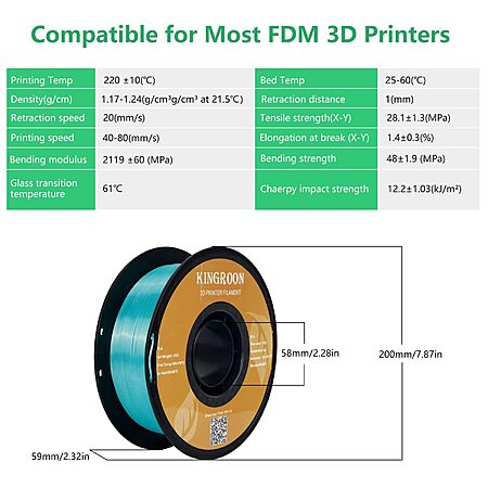 Kingroon Silk PLA Filament Several Colors 1KGx4 Bundle 1.75mm $7.19/KG $28.79