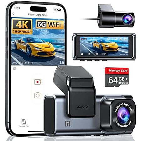 [Prime] $39.99*: Navycrest 4K Front + 2.5K Rear WiFi Dual Dash Cam w/ 64GB microSD at Amazon