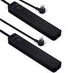 Prime Members: 2-Pack 2-Ft Amazon Basics 6-Outlet, 600 Joule Surge Protector Power Strip (Black) $8.88 + Free Shipping