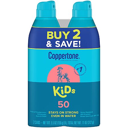 Amazon[amazon.com] has 2-Pack 5.5-oz Coppertone Kids Sunscreen Spray (SPF 50) for $4.75 when you checkout with Subscribe & Save. Shipping is free w/ Prime or on $35+.