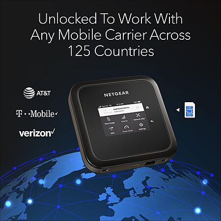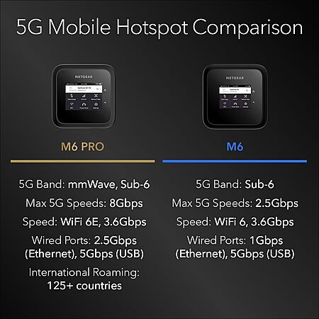 Model: NETGEAR Nighthawk M6 Pro Mobile Hotspot 5G mmWave, 8Gbps, Unlocked,AT&T, T-Mobile,Verizon International Roaming 125 Countries,WiFi 6E,Portable Device with touch control, Modem Wireless Router(MR6550)