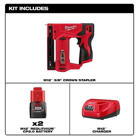 Milwaukee M12 12V 3/8" Crown Stapler w/ 2x 2.0Ah Batteries & Charger $119 + Free Shipping
