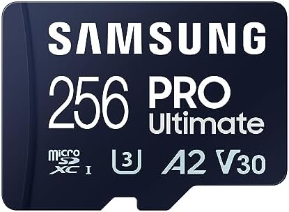 Model: Samsung PRO Ultimate microSD Memory Card + Adapter, 256GB microSDXC, Up to 200 MB/s, 4K UHD, UHS-I, Class 10, U3,V30, A2 for GoPRO Action Cam, DJI Drone, Gaming, Phones, Tablets, MB-MY256SA/AM