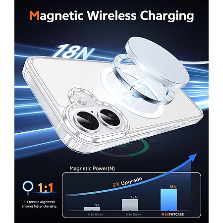 FNTCASE for iPhone 17 Case Clear: Magnetic Transparent Phone Cases with Screen Protector Slim Anti Yellowing Military Grade Drop Protection Rugged Shockproof $5.69