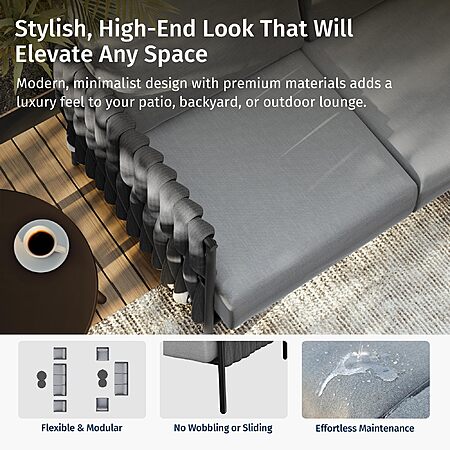 Amazon[amazon.com] has for Prime Members: EAST OAK 5-Piece Patio Furniture Set (Misty Grey; 3-Seat Sofa + Armchair + 2 Tables) for $684.99. Shipping is free.