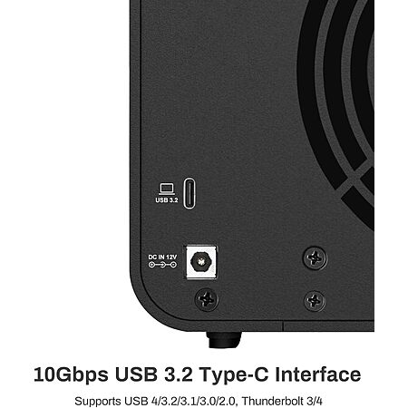 Plug-and-Play Compatibility: The D4-320 USB storage supports 4 individual disks (NO RAID function), and is plug-and-play, eliminating the need for drivers. It is highly compatible with MAC, Windows, and Linux operating systems. The USB Type-C interface supports various computer interfaces, including USB 3.0, USB 3.1, USB 3.2, Thunderbolt 3, and Thunderbolt 4.