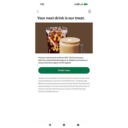 Starbucks Rewards App has a free handcrafted beverage, one time use from 10/7-10/13. ($10 Max value) YMMV. Apply coupon at checkout or ask barista to apply coupon at register. See Photos.
