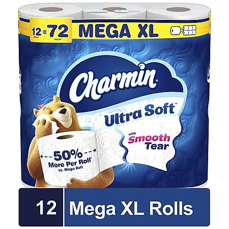 Walgreens FREE SHIP TO HOME: Charmin Toilet Paper Mega XL Rolls No Scent, 336 Sheets Per Roll, 336.0 ea, 12 pack x 3 =216 reg rolls $50.37, earn $15 wags cash & 15 Visa Rebate