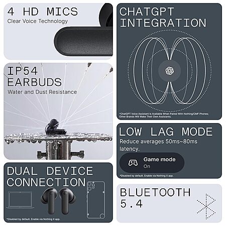 Ascend Gadgets Co. via Amazon has for Prime Members: CMF by Nothing Buds 2a Hybrid Active Noise Cancelling Wireless Earbuds (Dark Grey) on sale for $19.99. Shipping is free.