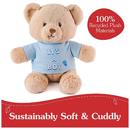Amazon[amazon.com] has for Prime Members: 12" GUND "It's a Boy" Sustainable Message Teddy Bear w/ T-Shirt (Made from 100% Recycled Materials) for $5.16. Shipping is free w/ Prime or on $35+.