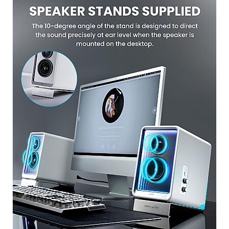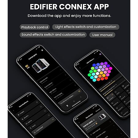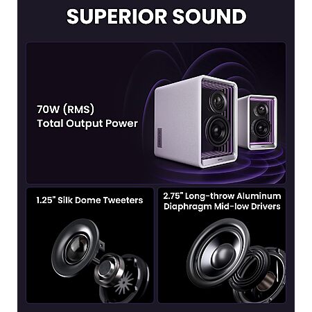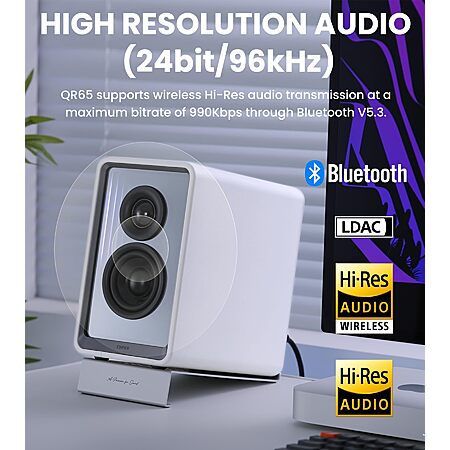 Edifier QR65 Desktop Active Monitor with 2.75" Long-Throw Aluminum Diaphragm mid-Low Drivers, Hi-Res Audio, Brilliant Light Effects, 70W Output Power Bluetooth Speakers with Stands