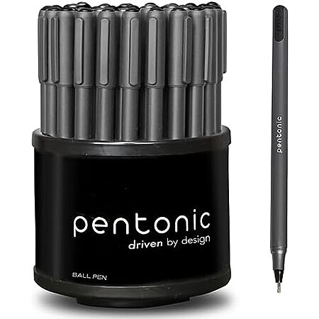 Model: Pentonic Ballpoint Pens In Pen Organizer, Bulk 50 Count, Black Ink, 1.0 mm Medium Point, Smooth Writing For Journaling, Office & School (PEN12537)