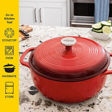 Lodge 6 Quart Enameled Cast Iron Dutch Oven with Lid – Dual Handles – Oven Safe up to 500° F or on Stovetop - Use to Marinate, Cook, Bake, $77.99
