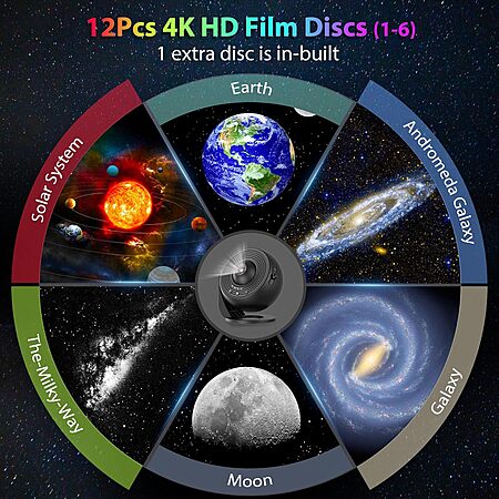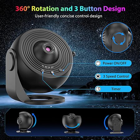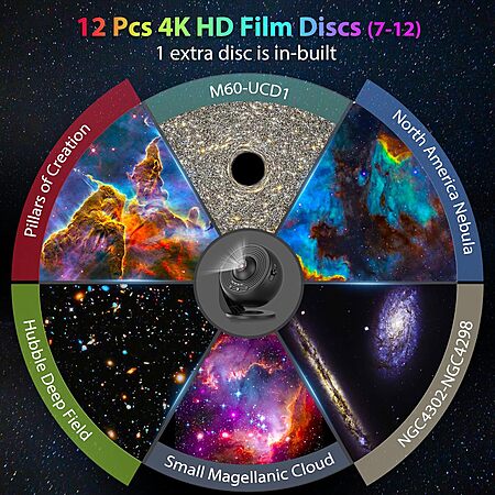 Prime Members: FlyEagle HD 360° Rotating 13-Film Discs Planetarium Galaxy Projector (Deep Black) $10.34 + Free Shipping