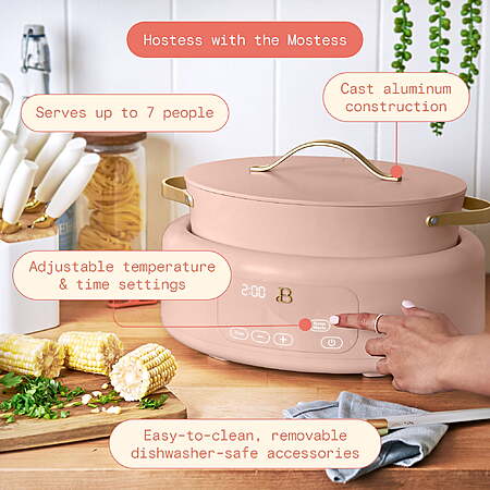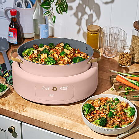 Product Description: | Sauté, slow cook, simmer, steam, and so much more—the Beautiful 10-in-1 6qt Electric Multi-Cooker is a marvel in the kitchen. This do-it-all countertop companion replaces 10 cooking essentials with 7 preset functions to easily whip up whatever you’re craving. Prep and cook right in the pot, then finish it off in the oven for a crisp finish—the pot and lid are oven safe up to 400°F. And did we mention it doubles as a stylish serving dish? Now that’s beautiful. Created by Drew Barrymore, Beautiful Kitchenware combines elegant design, contemporary colors and modern silhouettes for high-performance appliances that look beautiful in your kitchen. Condition: new. 6qt capacity, serves up to 7 people Replaces 10 cooking go-tos: sauté pan, skillet, slow cooker, stock pot, braiser, steamer, dutch oven, rice cooker, serving dish, warming tray Features 7 preset functions: sear/sauté, slow cook, braise, simmer, steam, rice, warm Lightweight pot in a cast aluminum construction for easy maneuvering Adjust temperature and time setting on sleek touch-activated display—up to 400°F and 12 hours Vessel and lid are oven-safe to 400°F for crisping up meals Durable stainless steel handles, made to last Easy-to-clean and removable dishwasher-safe accessories Includes steam rack for vegetables and more Condition: new |