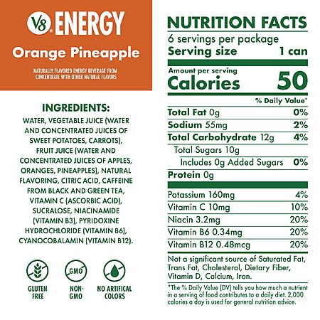 Amazon [amazon.com] has 24-Pack V8 Energy Drink (Orange Pineapple) for $14.4 - 25% Off when you 'clip' the coupon on product page - 5% Off when you checkout via Subscribe & Save = $10.04. Shipping is free w/ Prime or on $35+.