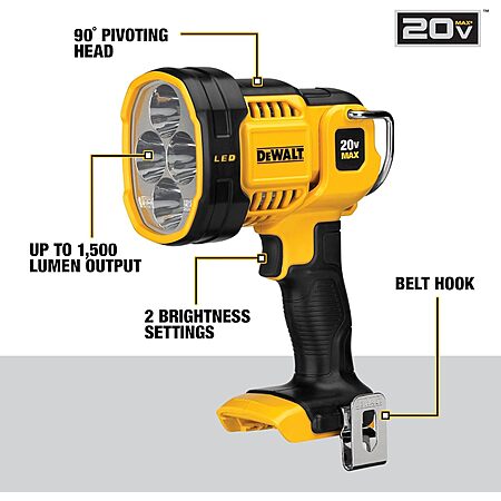 Prime Members: DeWALT DCL043 20V MAX LED Work Light / Spotlight (Bare Tool)