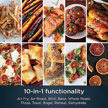 - 10-IN-1 FUNCTIONALITY: Includes 10 versatile cooking programs: Air Fry, Air Roast, Broil, Bake, Whole Roast, Pizza. Toast, Bagel, Reheat, Dehydrate.