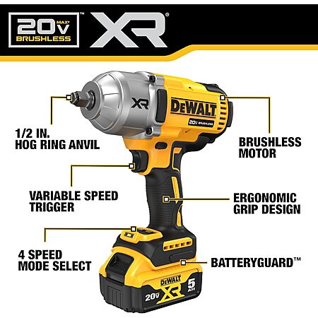 DEWALT 20V MAX Cordless Impact Wrench Kit, 20V MAX, 1/2" Hog Ring With 4-Mode Speed, Includes Battery, Charger and Kit Bag (DCF900P1) $239 @ Amazon