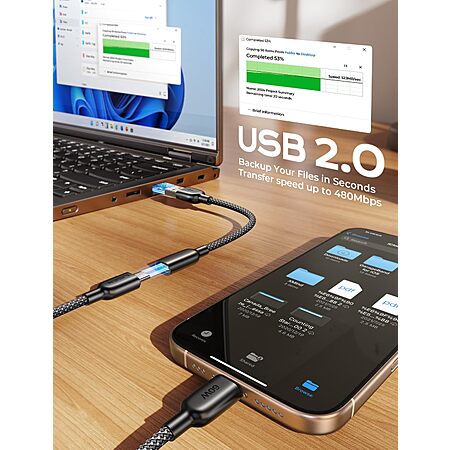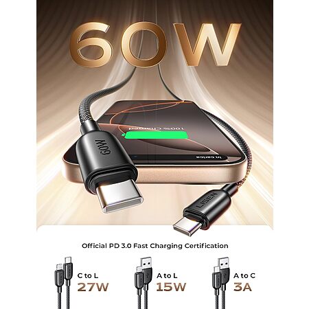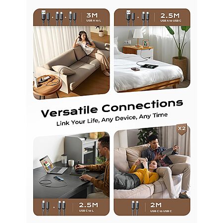 $4.89:[Prime]2pk 6.6' LISEN 60W USB-C Cables + 2pc 1.3' USB-C to USB-A / Lightning Adapters
