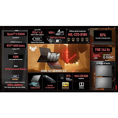 - AMD Ryzen 5 7535HS 6-core, 12-threads (3.3Ghz Base / 4.6GHz Boost) Processor