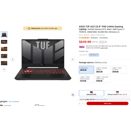 The 4060 in this laptop is the full power 140w variant, though keep in mind performance scaling heavily drops off past 100w. While the mobile rtx 4070 is around 20% faster, the 8gb of vram remains the primary constraint, and it's nowhere near worth the price premium. The same goes for the current gen mobile rtx 5060 and rtx 5070 laptop gpus, which both also only have 8gb of vram and command a large price premium. Blackwell is basically a refresh of ada lovelace without any major improvements, and you'd need to purchase a mobile rtx 5070ti or higher to get more than 8gb of vram. Multi frame generation (3x fg or higher), the primary upgrade of the rtx 5000 series over the 4000 series, is also basically pointless if your monitor has below a 180hz refresh rate (and 4x mode isn't viable without at least a 240hz refresh rate). The next step up, the mobile rtx 4080 or rtx 5070ti, are enormously faster and have 12gb of vram, but you'll pay at least twice as much for even a refurbished 4080 or 5070ti laptop. Amd competitors in this price range are rare, and at 1080p supporting dlss rather than only fsr is a major advantage. This has changed somewhat with fsr4, particularly if you're willing to do lots of manual modding using tools like optiscaler, but the rdna3 gpus in the few competing amd laptops don't support current iterations of fsr4 (they'll likely support an inferior int8 version in the future). I would've previously said nvidia's drivers are also a meaningful advantage, but nvidia's drivers since the 50 series launch have been rather poor. If you get this laptop and experience gpu related issues, I'd recommend rolling back to nvidia game ready driver 566.36, which is the most recent known stable driver (which is really sad considering it's almost a year old). There have been deals of the asus tuf a16 with the rx 7700s instead at a relatively similar price in the past, but that laptop hasn't been in this price range for a little while to the best of my knowledge.