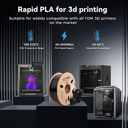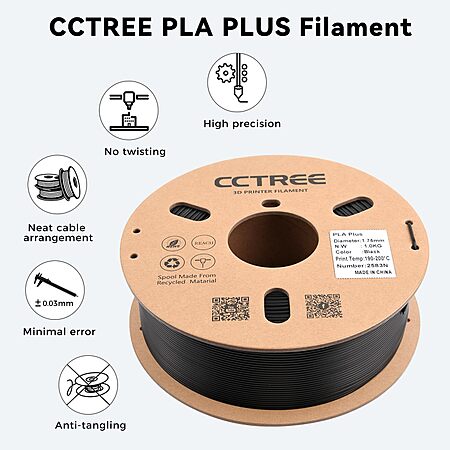 CCTREE Black PLA Plus Filament 1KG Rolls 1.75mm $9.19/KG $36.79