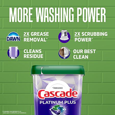 [Prime] 62-Count Cascade Platinum Plus Dishwasher Pods $15.78 + Free Shipping